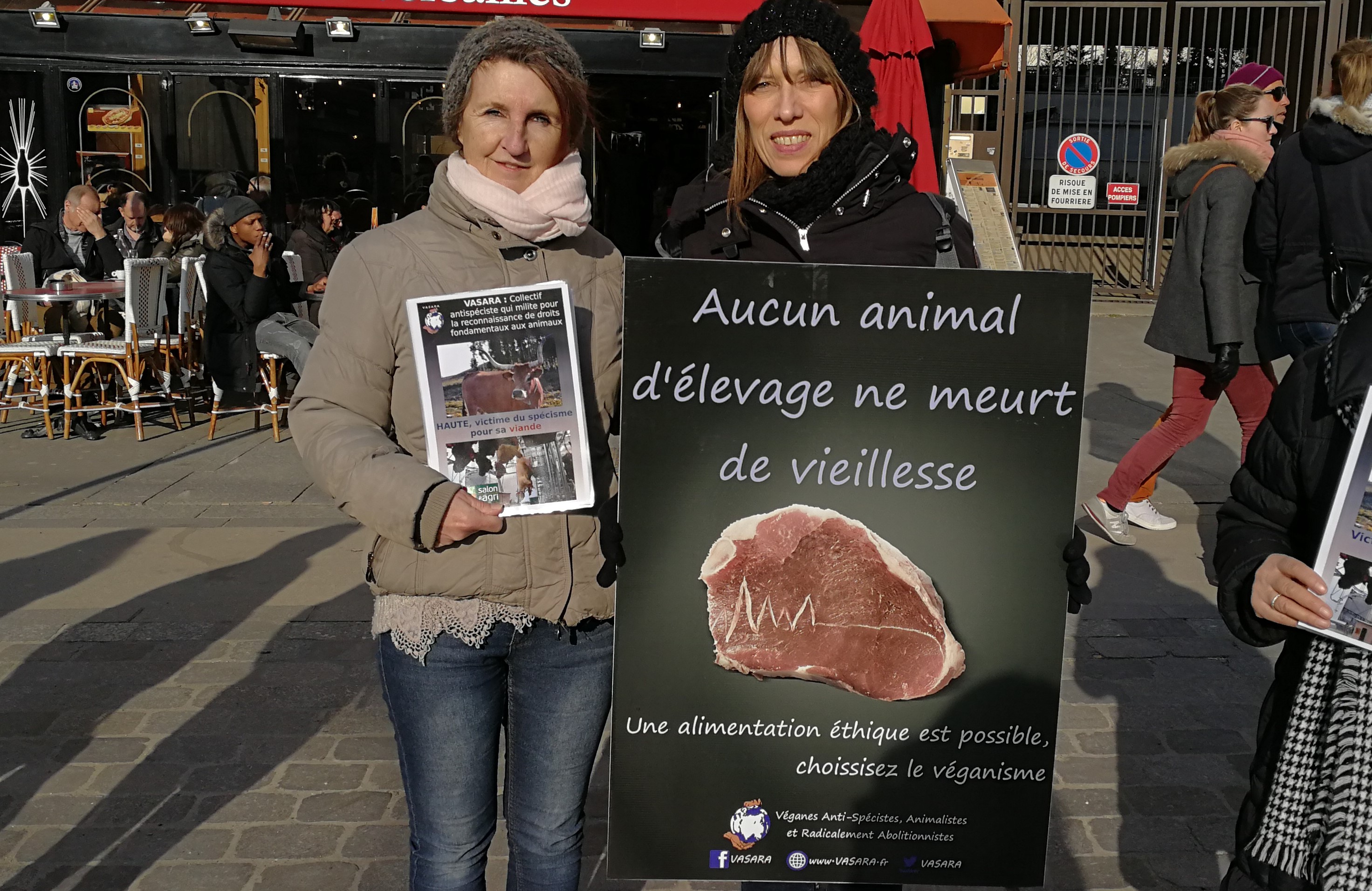 Cette année encore, une centaine de militants s’est réunie devant le Salon de l’agriculture. Le but de l’action était d’«interpeller et de remettre en question le spécisme» qui s’est installé selon eux dans la société.